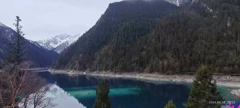 to go down at first, with the movement of time, the body began to get tired, and at the same time, the snow that originally stopped in the sky began to fall like a piece, dense, the temperature dropped, the road was not easy to walk, stop and go, the physical exertion was particularly large, especially the way forward, or very boring, this season, the scenery along the way down the mountain was almost covered with ice and snow, in fact, it took me three hours to go down the mountain, and when I arrived at the welcome pool, perhaps the temperature under the mountain was high, This pool has blue water, the scenery is still beautiful, my body has also reached a critical point, I bought a can of oxygen 50 meters near the exit, my husband's phone has been calling, I opened the phone coldly and replied coldly after leaving the gate of the scenic spot, my body began to tremble, arrived at the car at 18:00, the people in the car were in place, I also came back on time at the meeting time, the car started, there were bumps, I started to vomit, the oxygen did not work, and my head was about to crack. The huge nausea and discomfort made me unable to stand upright, and after getting out of the car, I started vomiting violently and there was nothing left! My husband took care of me to the hotel, he didn't eat dinner, worried about whether my life was going to be in danger, I still stayed in a hotel in Chuanzhusi Town at night, the tour guide comforted us with the glucose oral liquid, I ate almost nothing, my whole body was shivering from the cold, and I fell asleep all night. The next morning, I finally eased up and could eat simply. This experience made me shiver, high rebellion is not a joke, don't force your body!