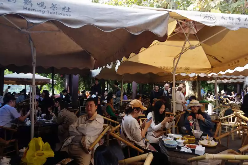 People's Park is quite small, with many locals doing morning exercises. The only difference is that the people inside Heming Teahouse are probably not locals. We casually walked around the park before heading to Chunxi Road to check out the panda climbing wall.