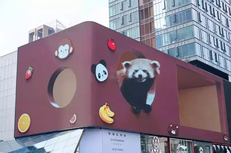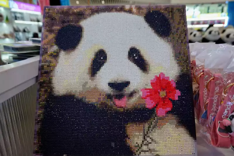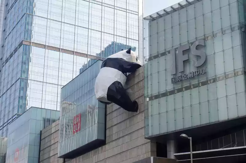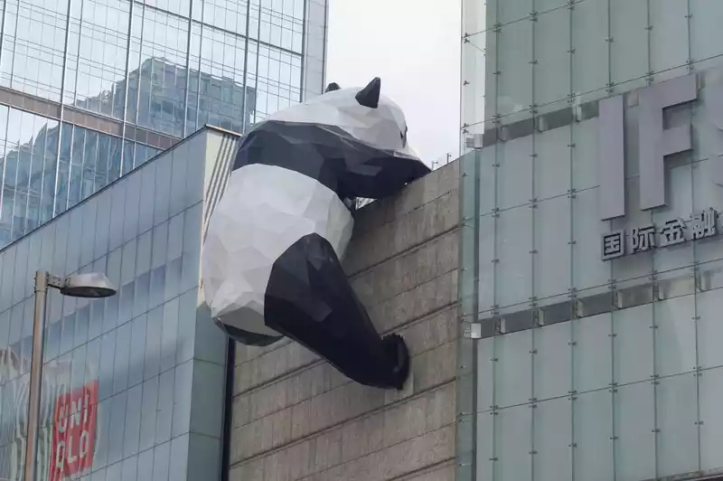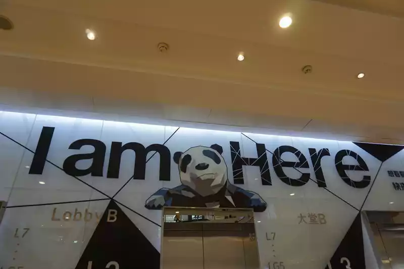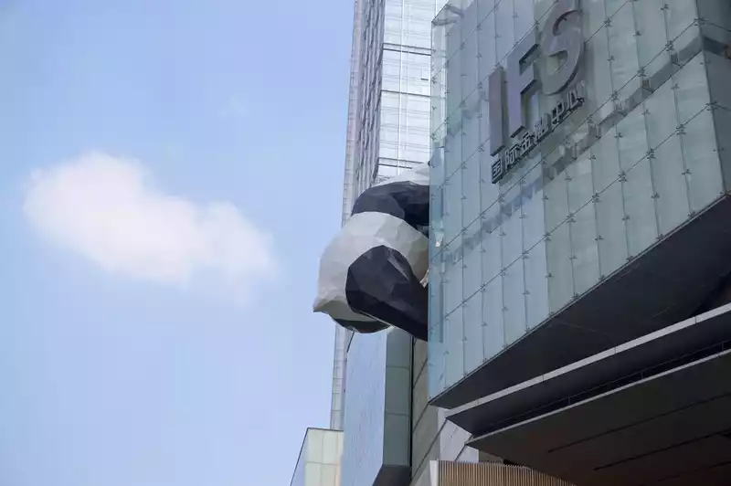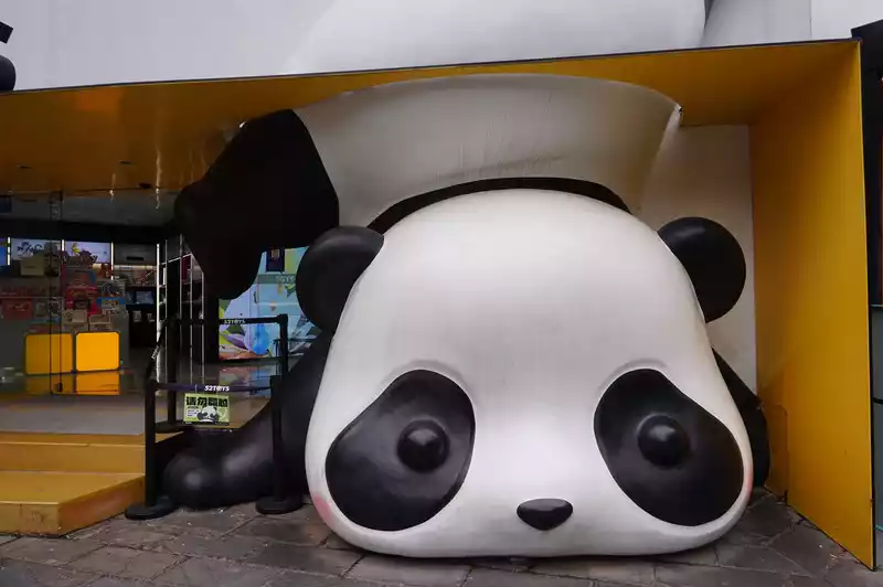 You can see the panda's face when you enter the top floor of the mall. There are many people queuing up to take pictures.