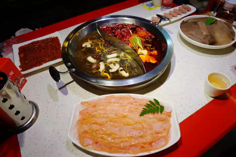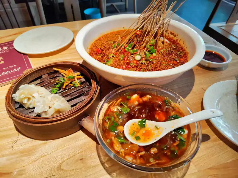 It’s really cheap to eat skewers hotpot in Chengdu. The restaurant we went to had a group buy set meal for 68 yuan. Although I don’t know how many skewers there were, I basically took two of all the skewers in the store. The final bill seemed to be more than 70 yuan. However, the hot pot and skewers here are just average, and the main feature is a high cost-performance ratio.