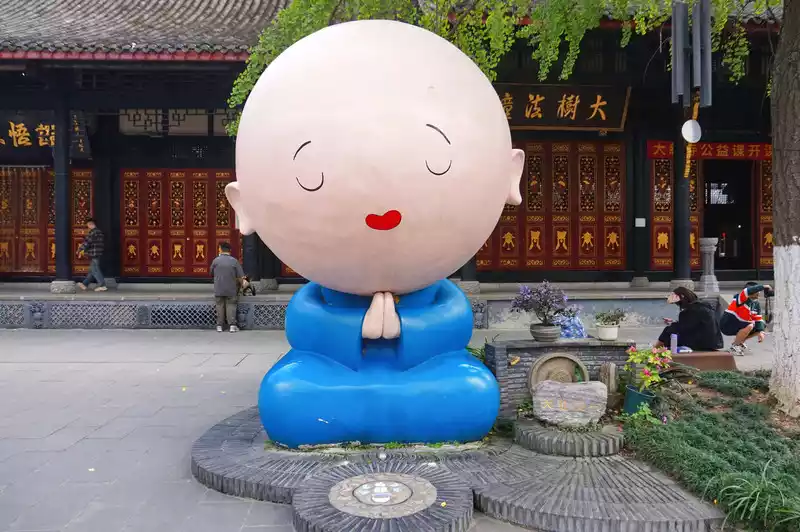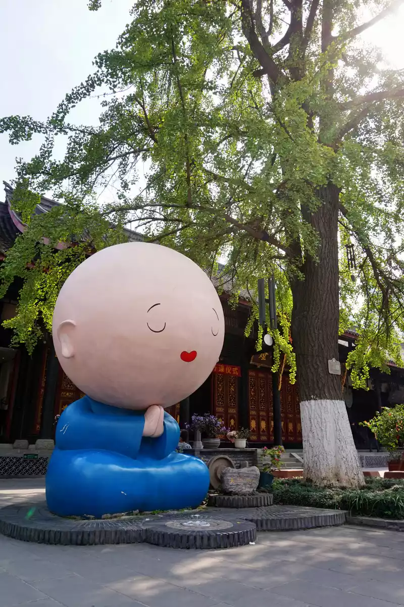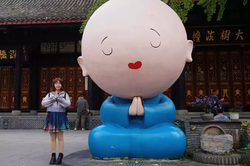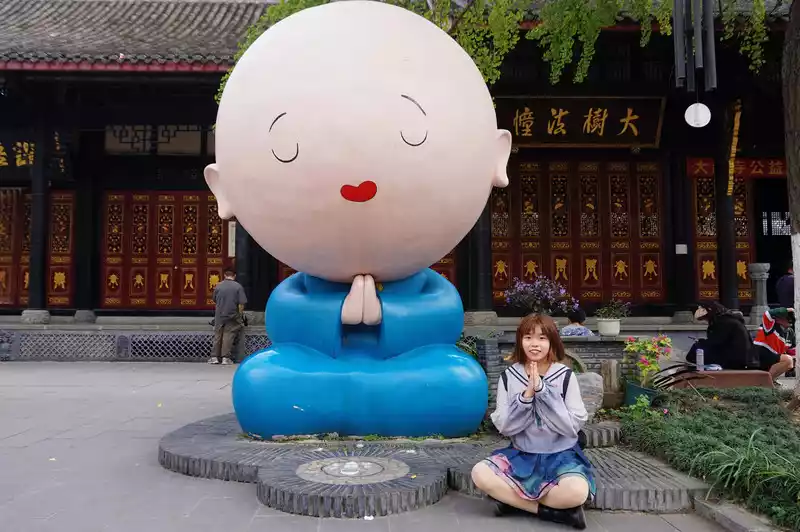 After eating and drinking, we went to the Daci Temple next to Taikoo Li and took a photo with the little monk.