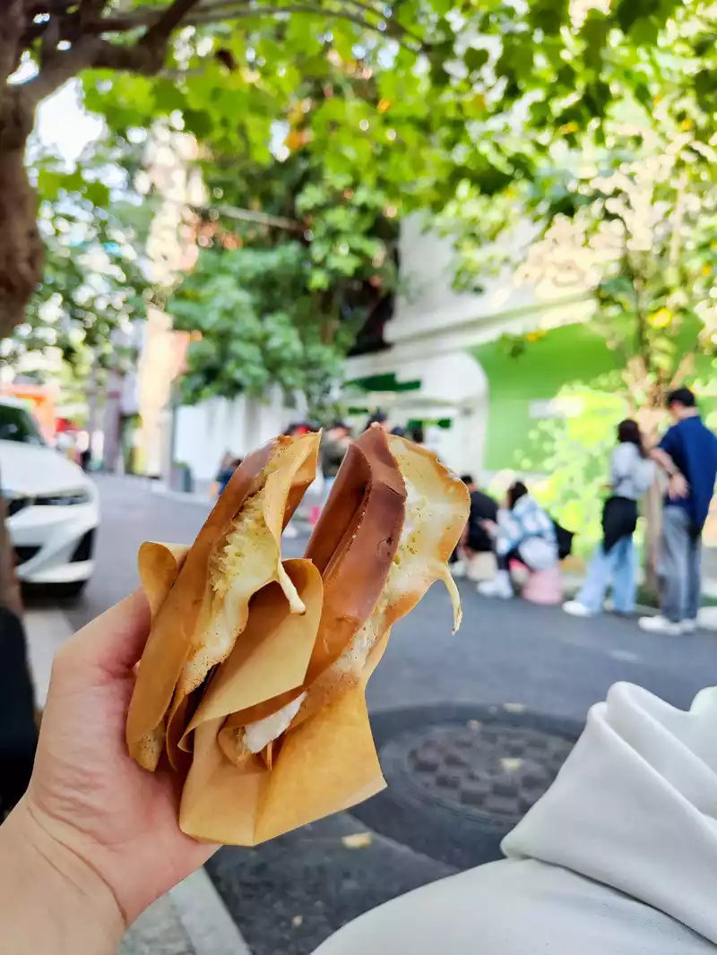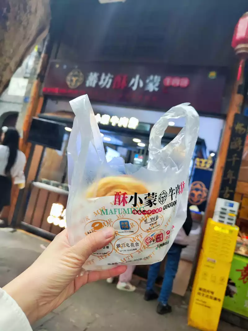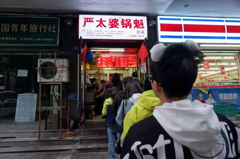 Passing the subway station, I saw a long line of people waiting for Guokui. I bought one for breakfast before it was crowded. It was delicious, but it was very greasy and a bit messy.