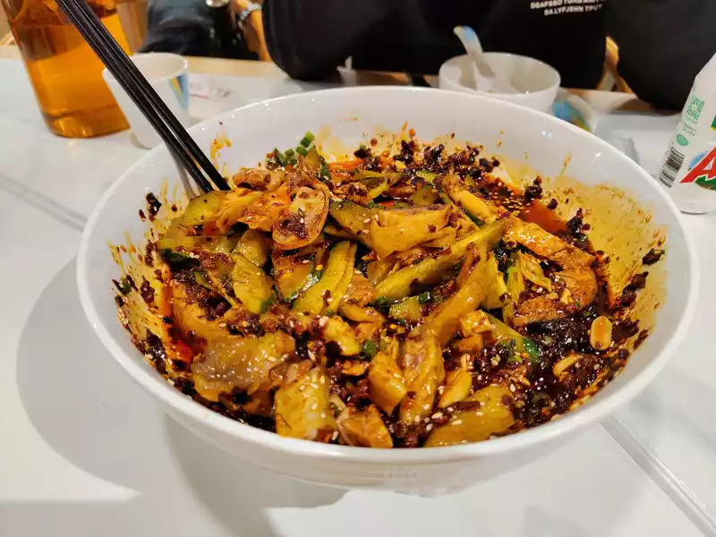 Wenshu Monastery is huge, with many buildings in the back. We spent almost an hour wandering around. There's a commercial street outside with lots of things to sell and plenty of places to eat. When I looked up the guide online, there were many recommended restaurants nearby, but we didn't miss it and just went into a new restaurant that was having a sale. It was surprisingly delicious.