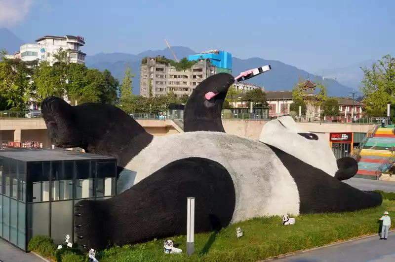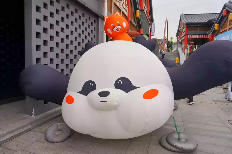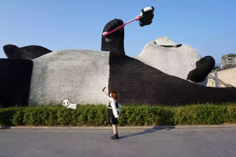 Take the urban rail to Lidui Park. Once you get off the urban rail, you will reach Yangtianwo Square. You can take photos with pandas