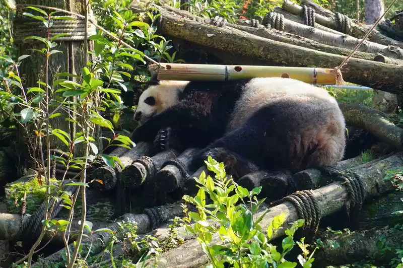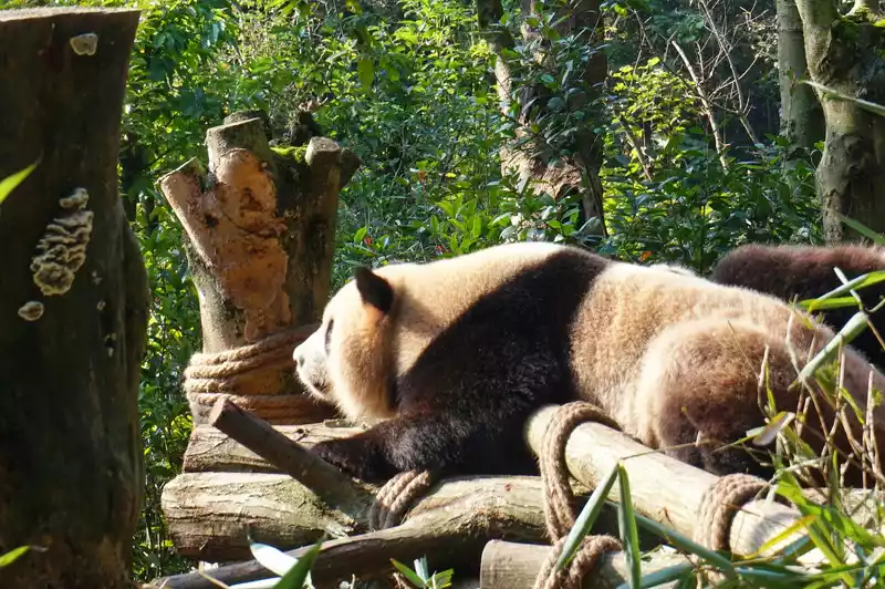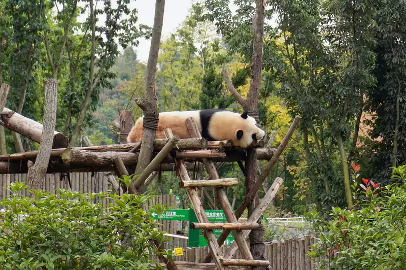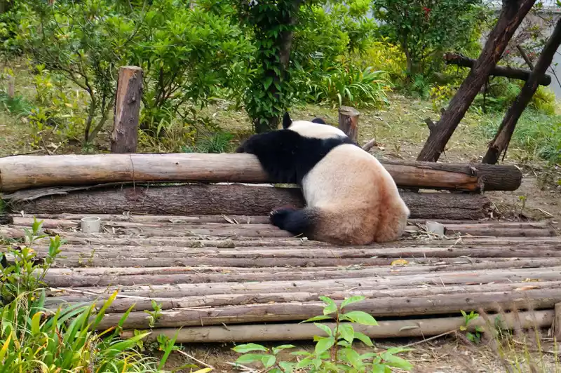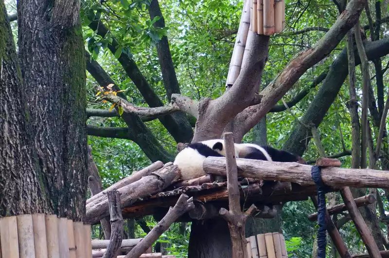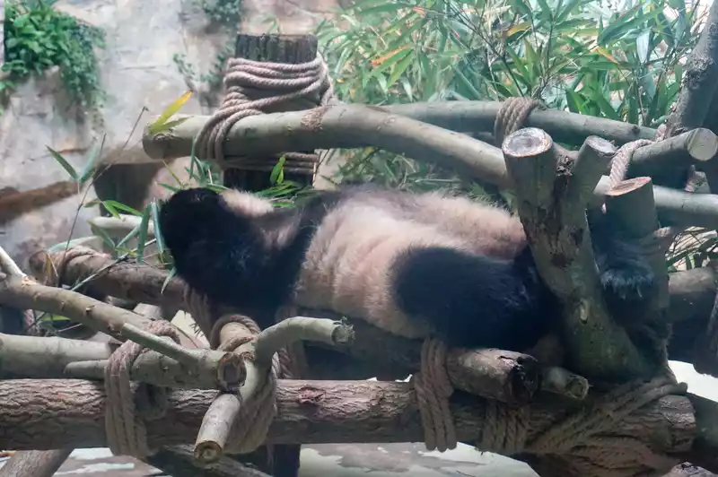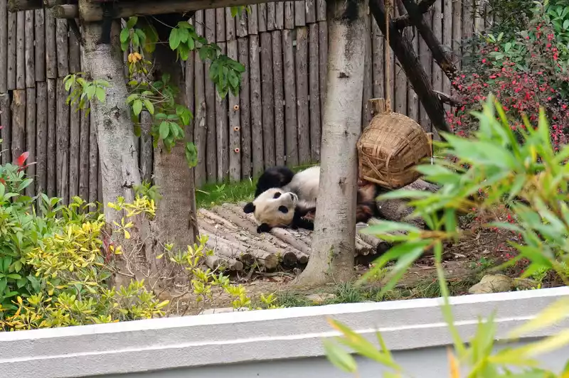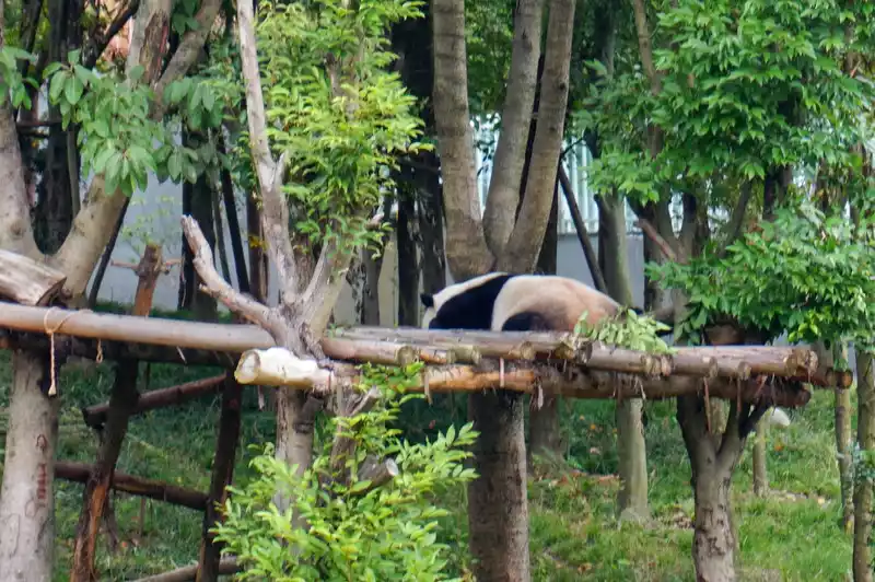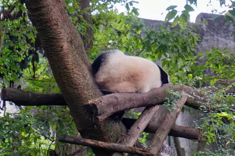 After leaving Huahua’s villa, I could slowly see the other giant pandas. It felt like lunchtime had passed. The giant pandas were all fast asleep, and I could see all sorts of pandas in various sleeping positions.