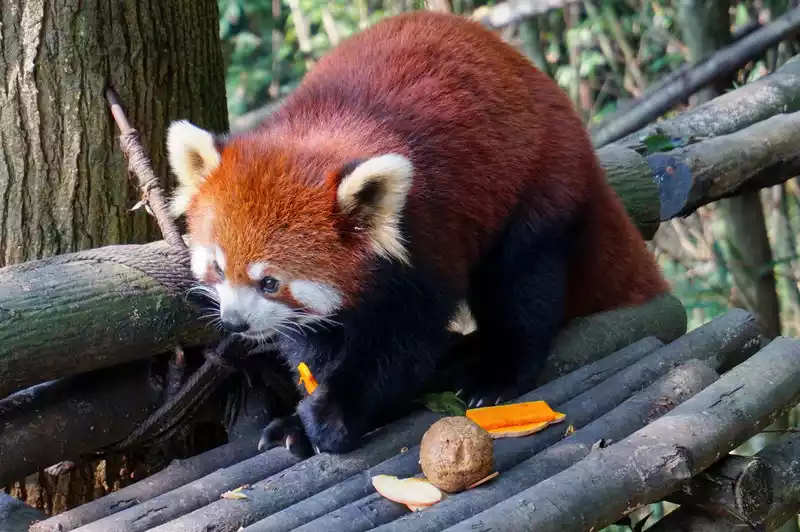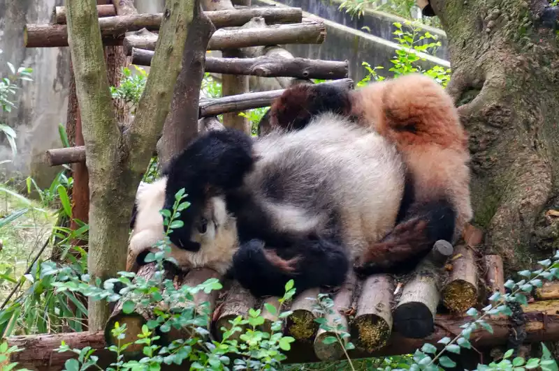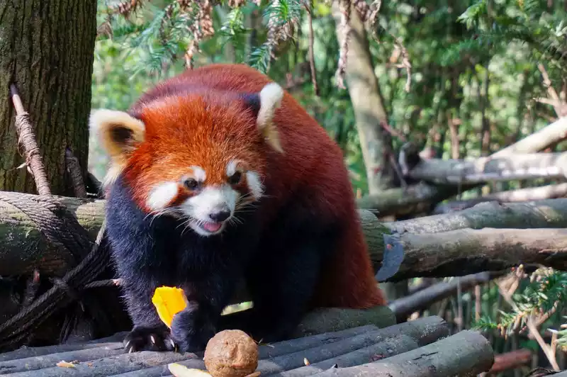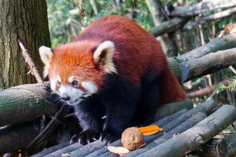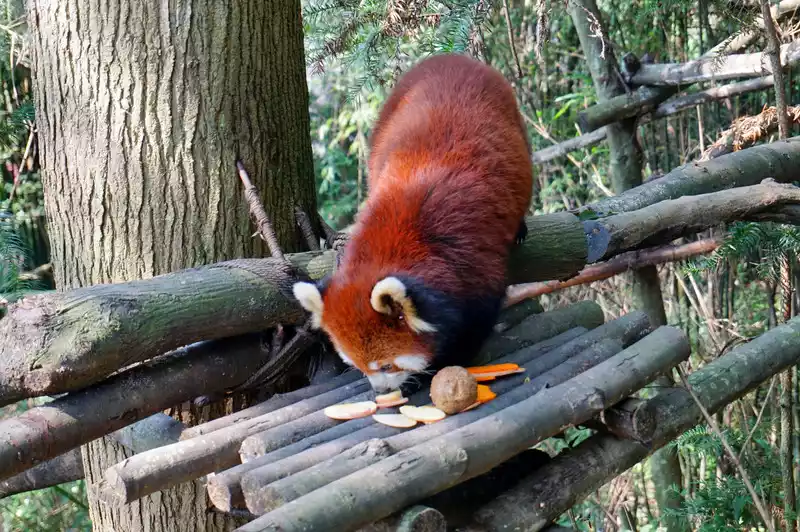 After passing the giant panda area, follow the guide and walk up the mountain, and you can see the red pandas
