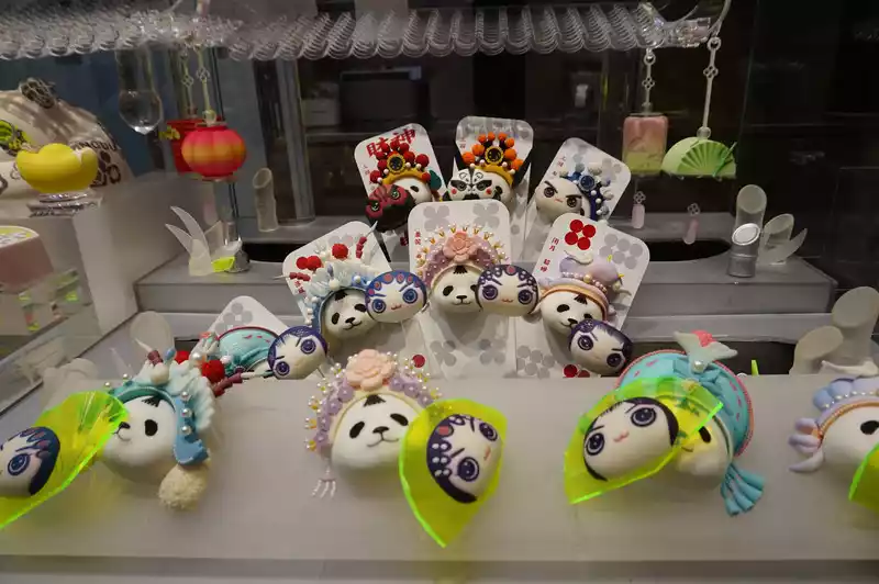 My main reason for coming to Kuanzhai Alley was to buy panda merchandise from Grandpa Panda. Sure enough, it was packed. The area was lined with shops selling panda merchandise. Grandpa Panda's place was packed with people.