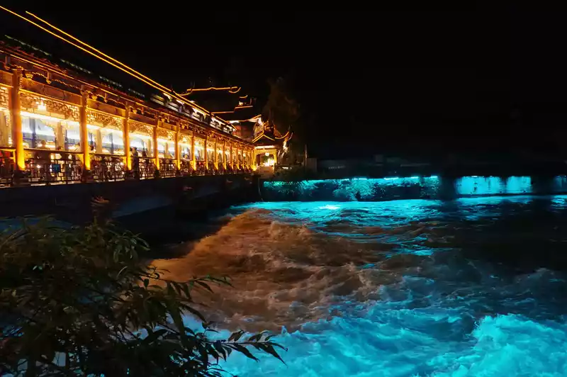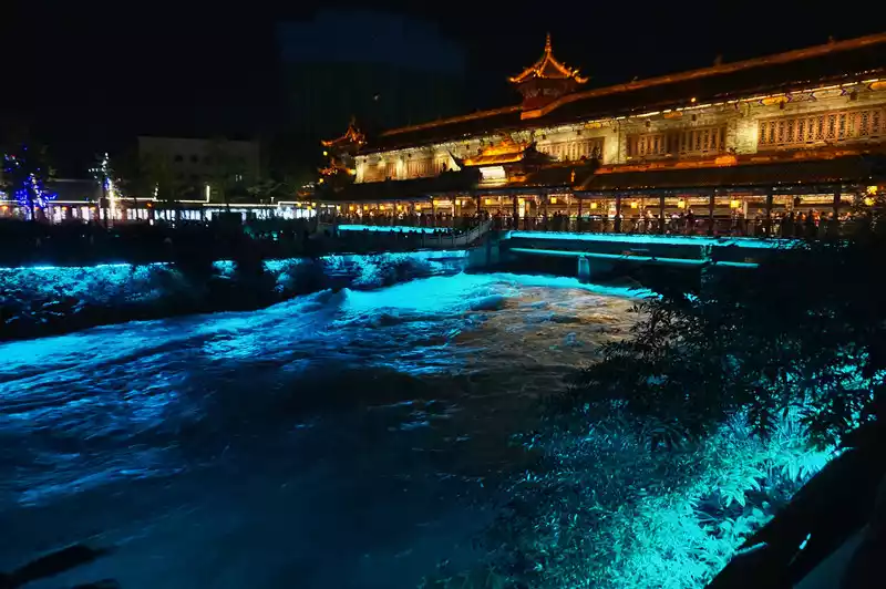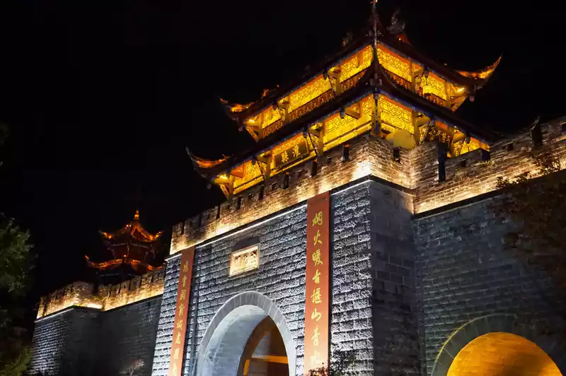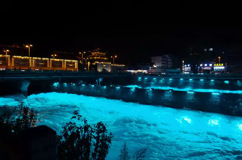 After leaving Dujiangyan, my legs were useless as I walked, and then returned to the ancient city of Guanxian County, waiting for the South Bridge to light up