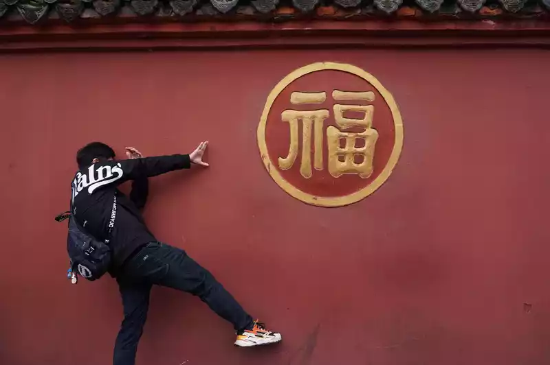 The most popular check-in spot at Wenshu Monastery is the red wall with the word "happiness". It's actually very long and has many words on it, which seems to indicate that everyone is eager to grasp happiness.