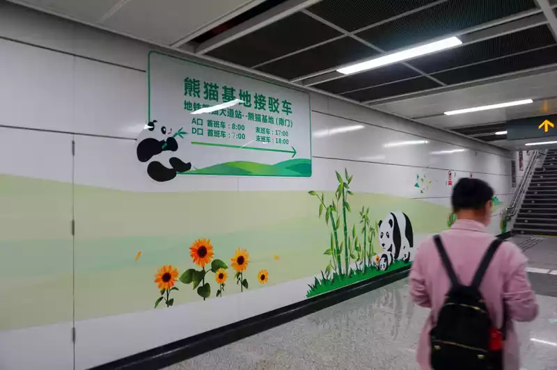 The panda base can be reached directly by subway. There is a special shuttle bus after exiting the subway station, which is very convenient. I arrived at the park around 9 o'clock. There were many panda elements at the subway station.