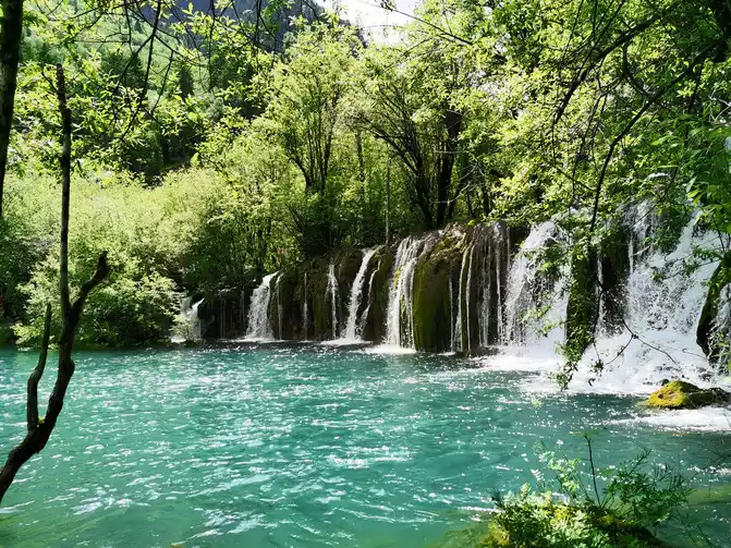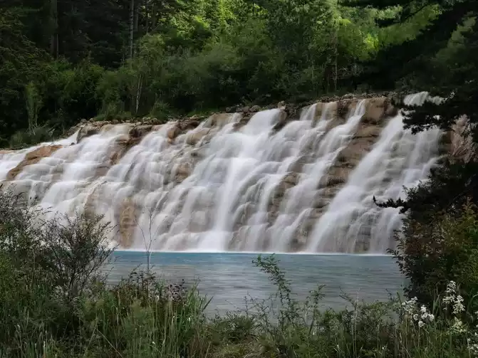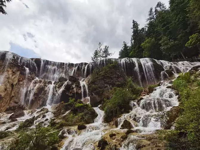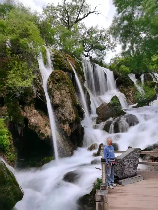 After walking through the colorful pond, take the scenic car down to the center of Nuorilang and walk to Nuorilang Waterfall, which is known as the widest waterfall in China, and Nuorilang is a transliteration of Tibetan, symbolizing majesty and magnificence. Here you can sit and rest while admiring this travertine waterfall. (Because I have walked more than 25,000 steps, my legs are already about to burst)
