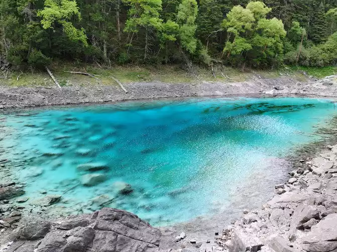 Go down, the colorful pond known as the eye of Jiuzhai is the smallest sea, and in June, the left line as a whole except for the long sea reflects the scene of the water drying up, So the left line only visited Changhai and Wucai Pond.