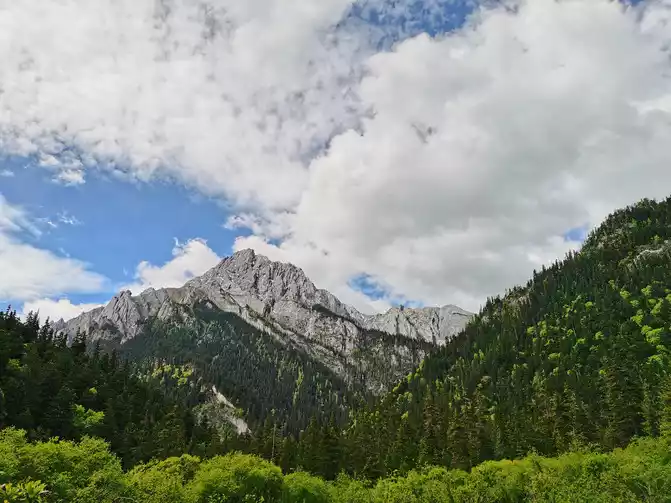 We went in June, we took the right line, directly to the primeval forest, the panda sea can get off the bus on the way, some passengers have been unable to bear the mood to enjoy the beautiful scenery, but I advise you to go to the primeval forest, natural oxygen bar, although the altitude is 3060, I still can't help but take two more breaths, people are refreshing, originally a little high on the landscape car, after getting off the car, a few breaths of oxygen are almost "drunk oxygen", in the words of my companions, it is the feeling of the twilight forest, and backed by the mountains, you can still see a small amount of snow on the top of the mountain in June, It's refreshing.