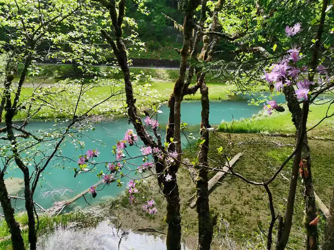 Walk down to the sea of grass and the sea of swans, on the way to enjoy the grass and the stream, the beautiful flowers and the turquoise small sea correspond to each other, I heard that there were swans in the Swan Sea before, but this time I happened to see a duck, hahaha