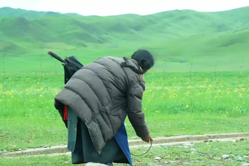 next morning, I got up early and returned to the bottom of the Lasang Monastery last night, where there was a prayer wheel, and the locals happened to be praying devoutly.