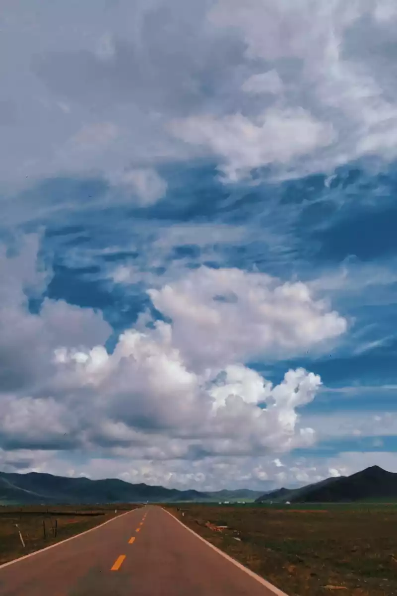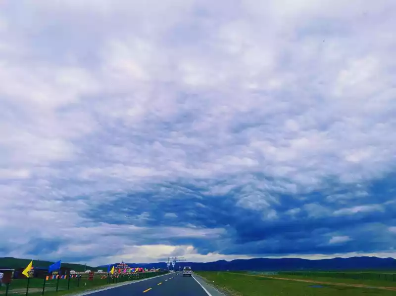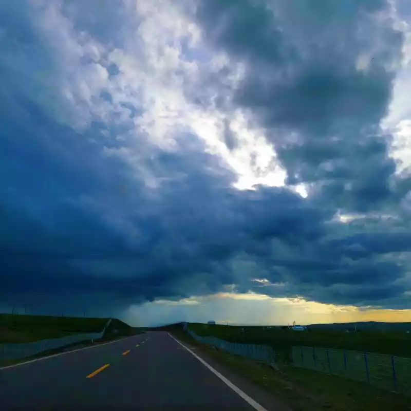 There are very few cars on this road, the road is straight, and the clouds on the horizon are large, thick and strong, and they show a variety of magical shapes, some like auspicious beasts, some like dinosaurs.