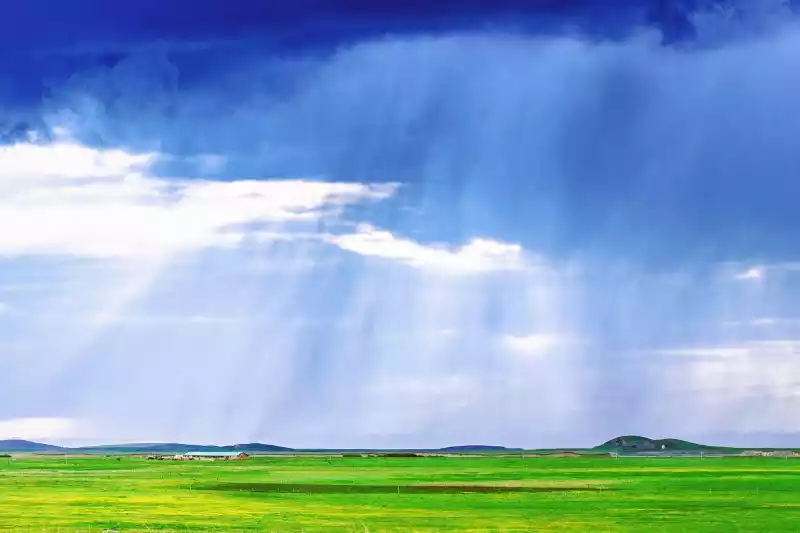 weather in the grassland is so fast-changing that heavy rain and scorching sun can be switched in a short period of time.