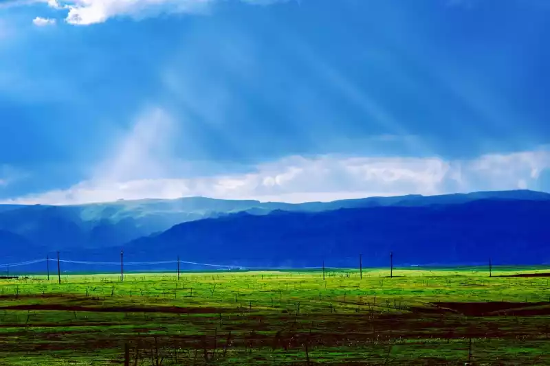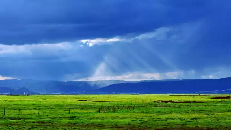 grassland was bright and bright on a sunny day, while the dark clouds on the other side obscured the sun, and Tyndall's light fell like rays.