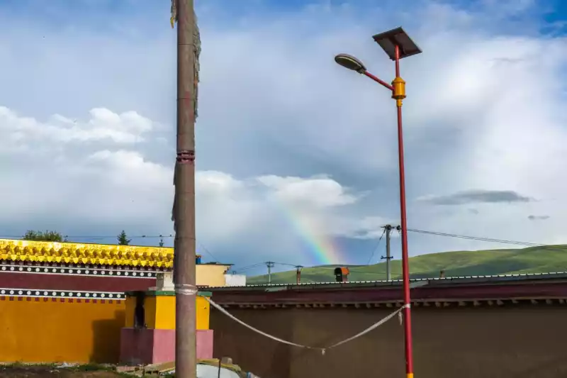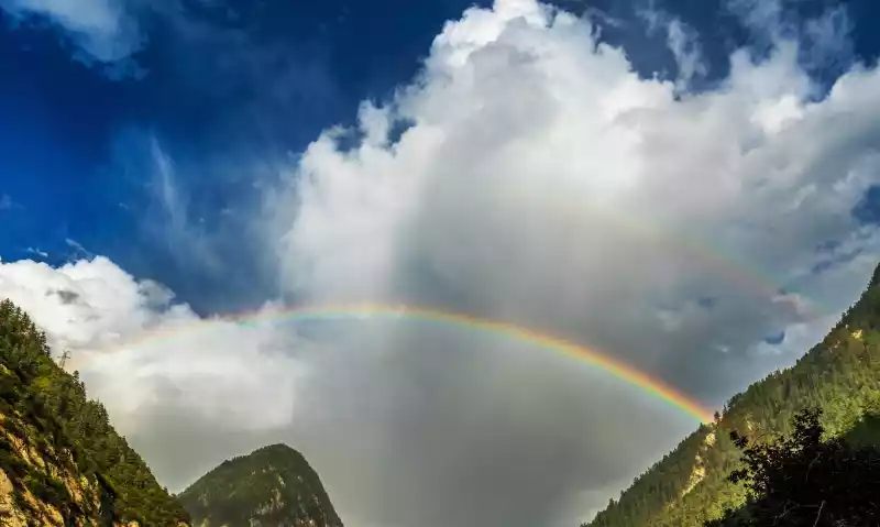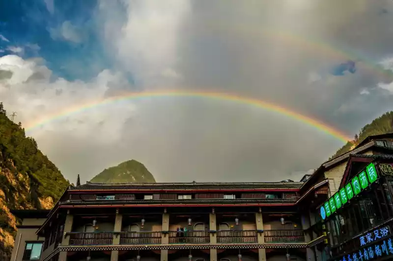 the evening when I arrived at Jiuzhaigou, I saw a rainbow and saw a double rainbow hanging in the clear sky, which was both a surprise and a kind of comfort that came true.