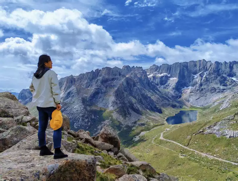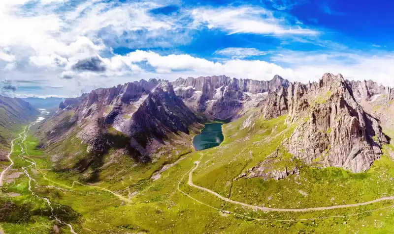 Standing here, you can overlook the sea in the deep mountains: Zagar Wrong. There is a quiet and deep blue pool in the bleak stone mountains, like a crystal delicate gem embedded in a rough but stunningly shaped pedestal, there is a kind of contrasting beauty.