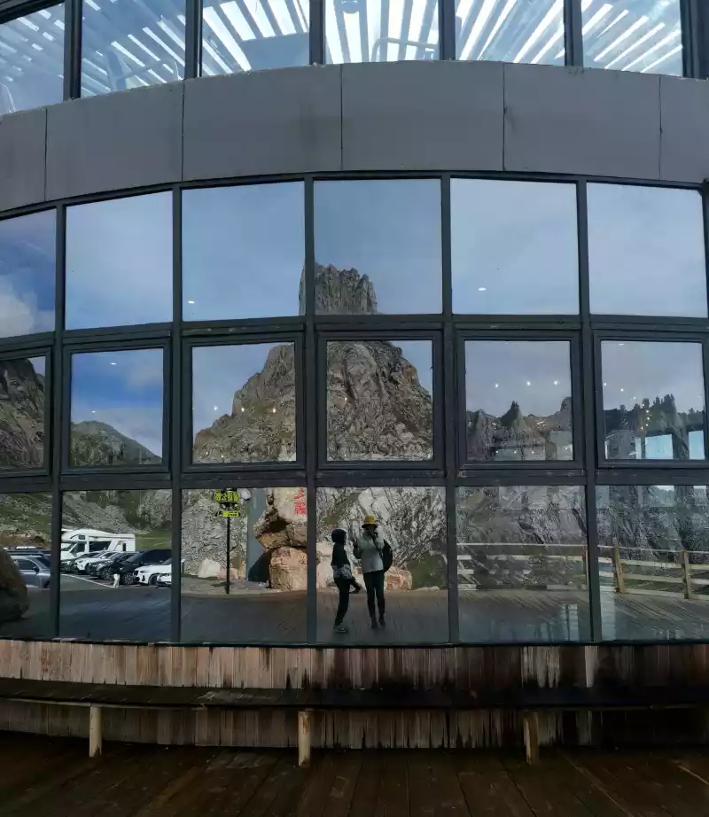 After staying by the lake for a long time, I continued to drive to the Panyangping parking lot, but fortunately it was not the peak season and there were enough parking spaces. After parking the car, I took another shuttle bus to the 4520 observation deck. The reason why it is called 4520 is because the altitude here is 4520 meters, and this is also the highest place on our trip, put on all the clothes.