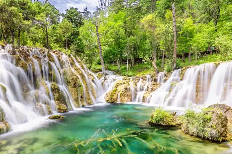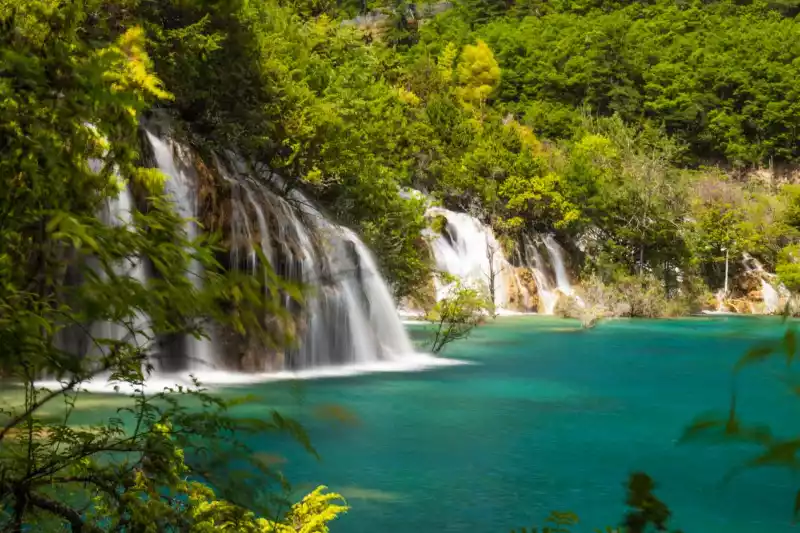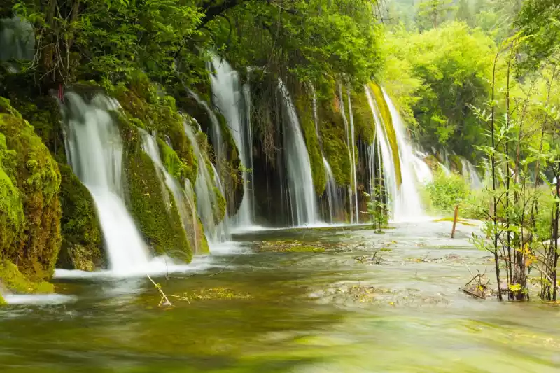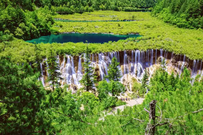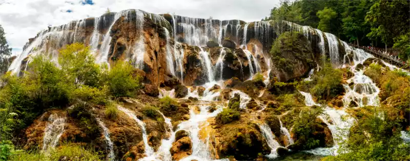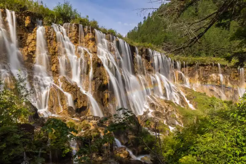 Nuorilang is the central area of Jiuzhai, where there is the only service center in the panoramic area, and the Nuorilang Waterfall, which is famous throughout the country for "Journey to the West". Compared with other waterfalls in Jiuzhai, Nuorilang Waterfall is characterized by being wide enough, although the drop is not very large, but the momentum is powerful. In the morning, you can also see the rainbow on the waterfall from the side angle.