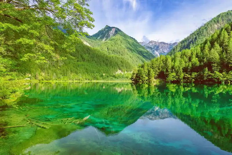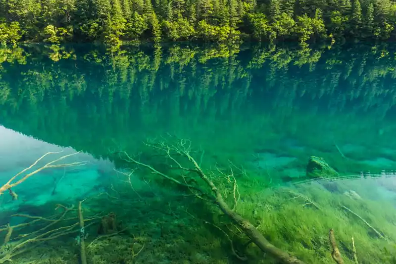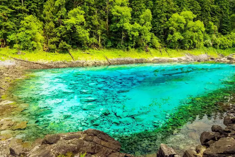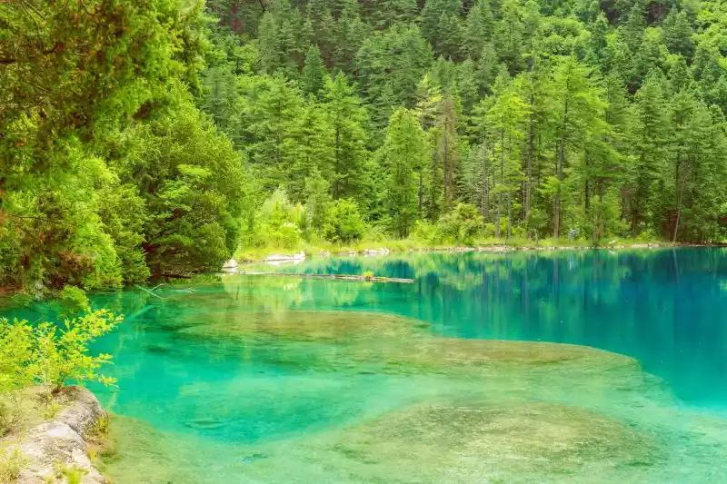 Qinglong Sea is more like the sea of Jiuzhai, with deep water and green trees.