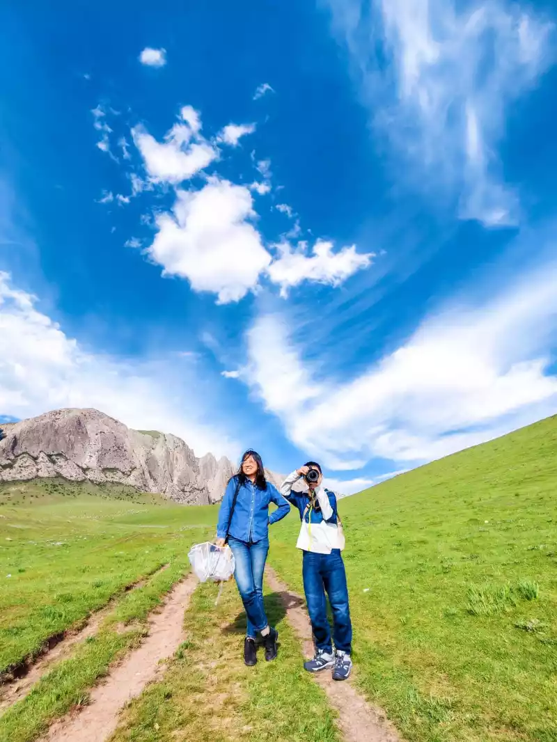 photos taken from this angle are beautiful, but they are not distinguishable because all the photos taken by tourists are similar. Fortunately, we waited until the sky cleared in the background, and with the blessing of the blue sky, the mountains looked much milder.