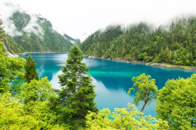 Changhai is the largest sea in Jiuzhai, the highest altitude and the largest area. The temperament of its mother is incomparable to other seas. In the early morning, it is surrounded by mountains and shrouded in fog, with a graceful and deep beauty.