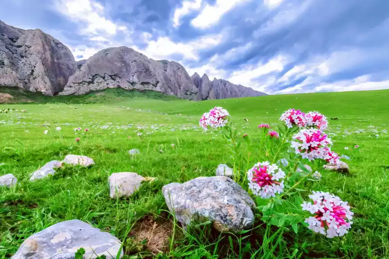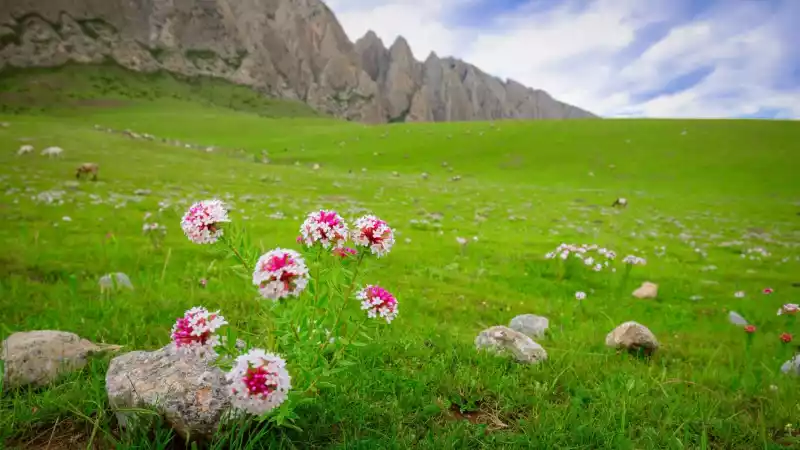 There are many clusters of pink flowers blooming in clusters in the shape of a circle on this grass, and when I came back to check, I found out that it has a scary name: wolf poison flower, because the rhizome is poisonous, cattle and sheep do not eat it.