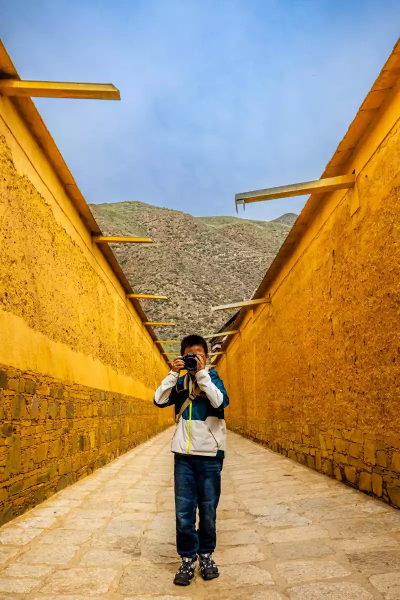 First take a shot on the red wall in front of Langmu Temple, various concave shapes. Later, I found that the jacket rubbed against the red powder on the wall, and the entire sleeves and pants were red. But none of this affects a good mood.