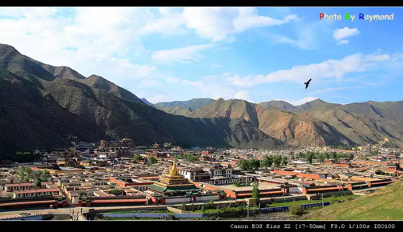 hillside outside the west gate offers a panoramic view of the temple. I tried to replicate a panorama of Labrang Temple taken by Ant in 2010, but found that the road has become wider and the urban construction is different, so it is difficult to capture the tranquility of that year.