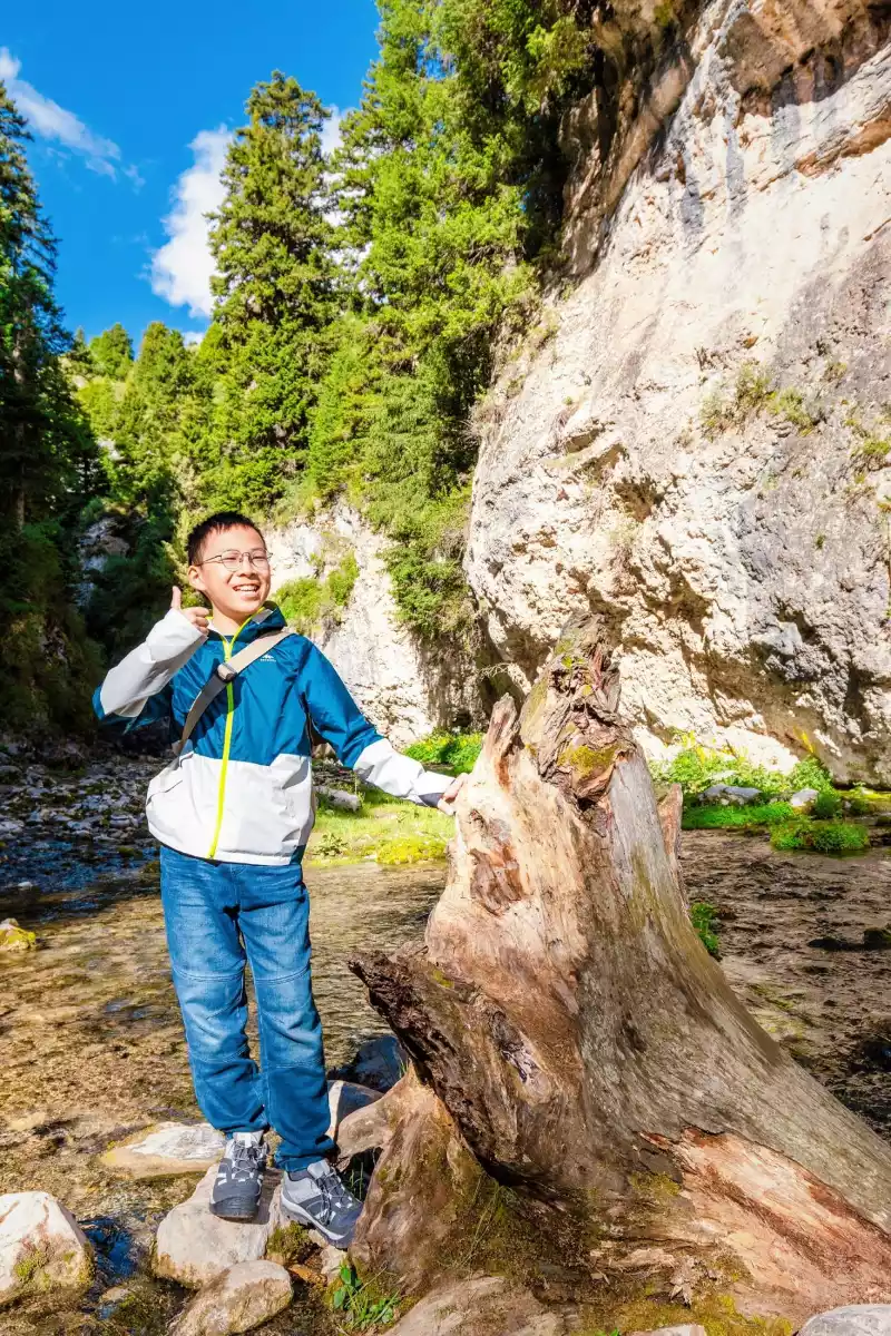 Yesterday I read a small ancient text with my baby, and when I saw this description, I felt that it was particularly in line with the scene of canyon hiking that day: "The mountains on both sides of the river are all cold trees, and they compete with each other, Strive for heights and point straight, thousands of peaks. The spring water stirs the rocks and makes a crisp sound; The good birds chirp together, and the chirping becomes a rhyme. ”