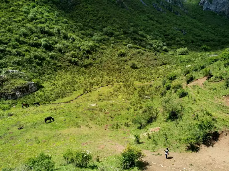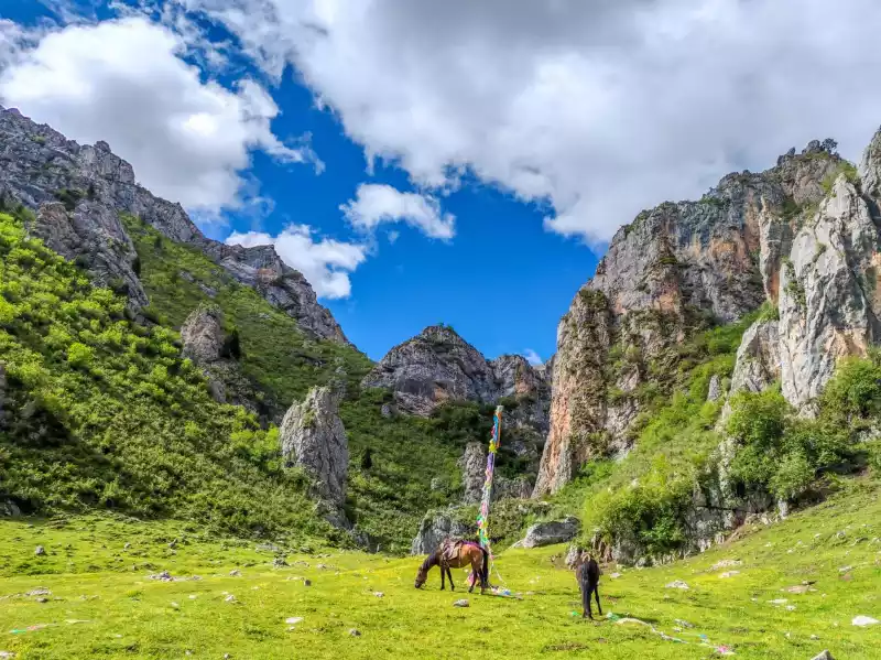The first resting point is also a large open lawn with Tibetan tents and their horses. Many tourists returned the same way after arriving here to rest. We decided to move on.