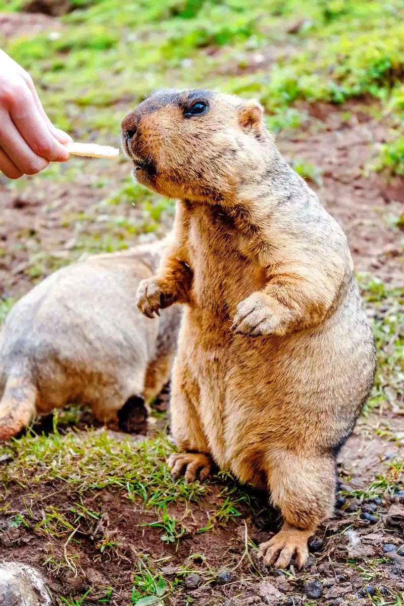 Not far away, I saw several tourists feeding marmots with snow cakes. Although it is not recommended to do this, I couldn't help but step forward and take a picture when I saw the cute appearance of the emoticons holding the food and crunching.