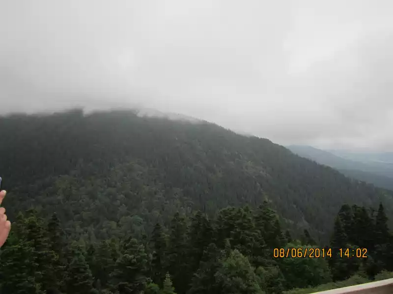 Driving towards Qingcheng Mountain, the sky has been cloudy and began to drizzle, to the