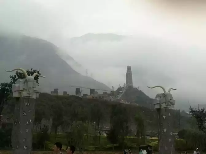 Chengdu has begun to restrict travel, Friday limit the tail number of 5, 0 car travel, our two cars tail number is exactly 5 , the number limit time is from 7:30 a.m. to 8:00 p.m., prohibited in the second ring road and the third ring road. In order not to delay the trip, we had to get up early again, pick up my mother at my uncle's house in the south of the city, and hurried out of the city, leaving the third ring road before 7:30. In fact, Dujiangyan is not far from Chengdu, and it took nearly 1 hour to arrive at the gate of Dujiangyan, which is still early, and there are uncles and aunts playing Tai Chi in the square at the gate of Dujiangyan. We bought a bowl of wontons for breakfast at a nearby snack bar. I bought a ticket at the door and walked slowly into Dujiangyan. It is said that Dujiangyan is "three points to see, seven points to talk ". There happened to be a tour group in front of us, so we automatically joined as supernumerary members, following the tour guide all the way and watching and listening to lectures, which made a lot of profits. God also helped, the weather has always been gloomy, otherwise the trees on the embankment will not be lush and will not be scorched.