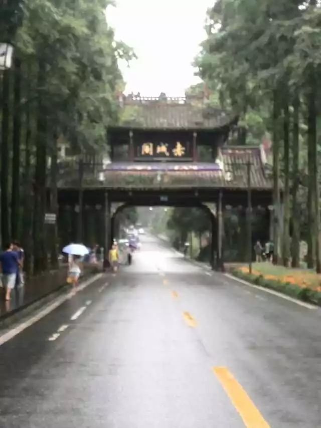 It is said that Qingcheng is secluded in the world, and you can appreciate it from the sightseeing route, there are towering trees on both sides, the water is gurgling under your feet, the drizzle seems to be there, and the sidewalks are paved with wooden strips, which is very comfortable to walk. As I walked, I saw several tea houses and teahouses along the way. I have long heard that Qingcheng Mountain is a summer resort for Chengdu people, and it seems to be well-deserved. There are mountains and waters, eating wild vegetables, playing mahjong, drinking tea and setting up a dragon gate array, which is really envious of the leisure blessed land of Chengdu people. Unconsciously walked to the gate of Qingcheng Mountain, at this time the rain started to get heavier, we felt that it was not safe to go up the mountain at this time and we couldn't see any scenery, so we simply took pictures at the mountain gate and visited here, and then found a teahouse that we passed by just now to enter the countryside and set up the dragon gate array.