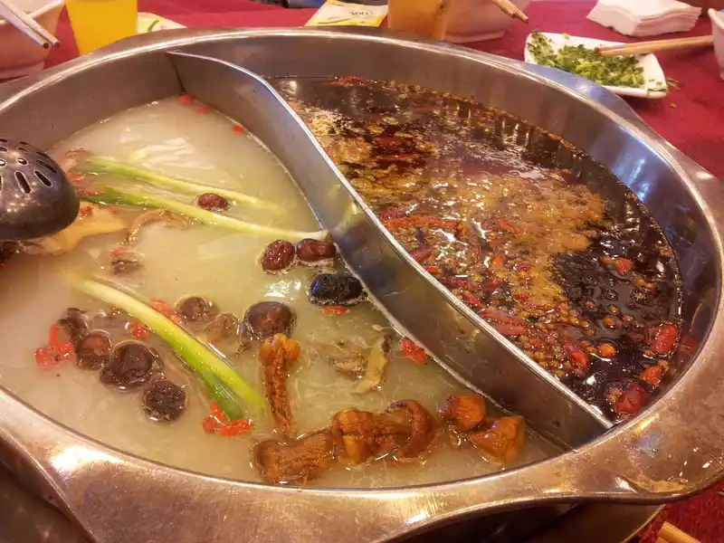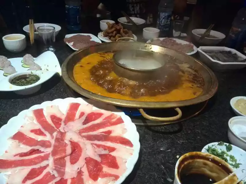 Coming out of the panda's house, it was already 2:00 p.m., rushed back to the hotel where I was staying to rest, and decided to go to the Rongcheng Lao Ma Hot Pot Restaurant on North Street to start our first meal of Chengdu food. Because I missed the meal, there was no one in the lobby. The 8 of us ordered a mandarin duck pot, the meat and vegetarian dishes of the shabu-shabu hot pot were randomly ordered together, and the spicy hot pot at Rongcheng's mother's house was butter hot pot, fragrant but not spicy, suitable for outsiders who don't eat spicy food. It cost a total of more than 500 yuan, which is considered to be over the hot pot addiction.