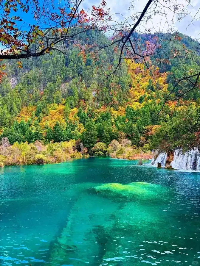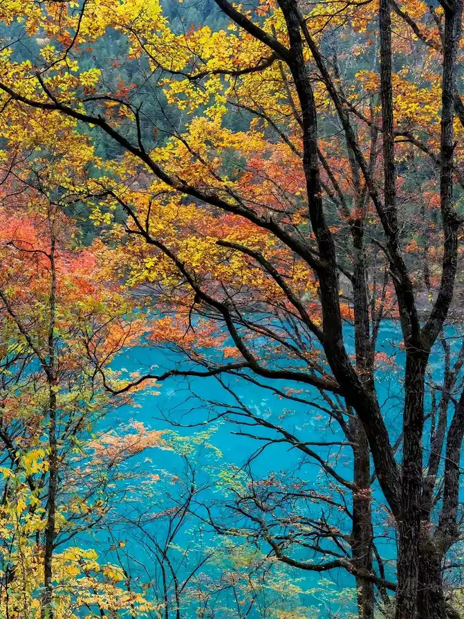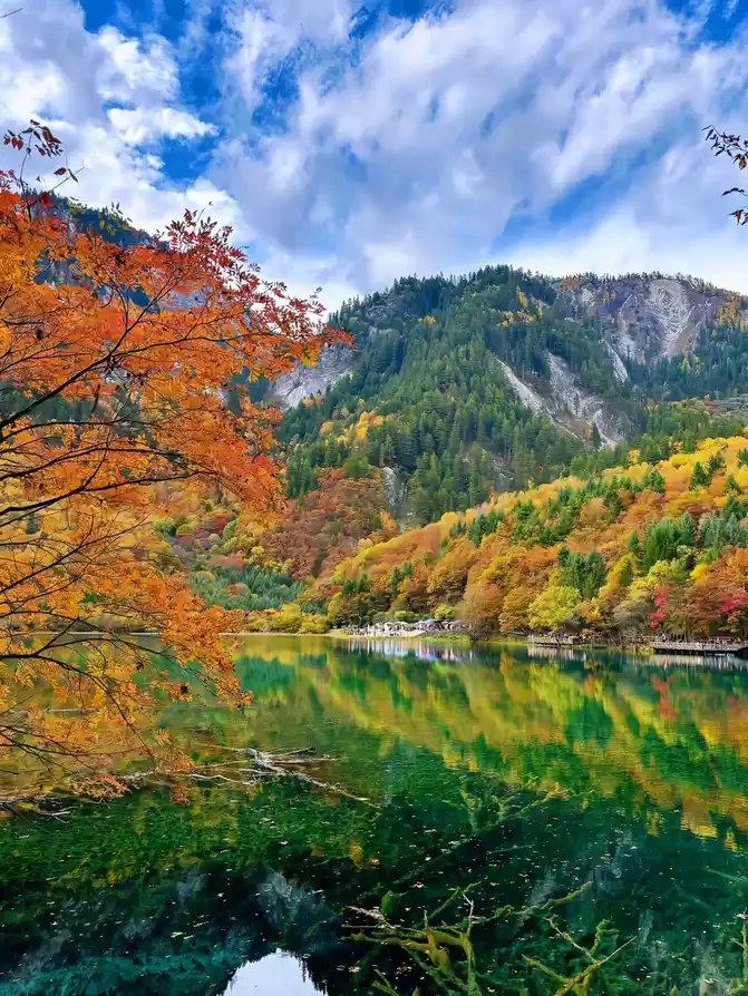 Thetour guide said that the number of people who will enter the ditch today is more than 40,000, and we have caught up with a big gathering. Well, wake up at 4:00, eat at 4:30, and leave at 5:00. Rushing to the gate of Jiuzhaigou at 7:00, there were already many tourists queuing up to enter the door, and they couldn't help but sigh, "Don't say that Jun is early, and there are more early pedestrians." Fortunately, it was not as scary as the colleague who came back said, I entered the door after queuing for about ten minutes, and I was not happy, I entered the door and continued to queue, taking the sightseeing bus, and the queue was called a winding and twisting line. As a result, 11 people were squeezed into two small teams. A car was sent directly to the center of Norilang, and we were miserable, and we had to take another car to Norilang. Finally got on the bus, but was told that Nuo Rilang would not stop and go all the way to the primeval forest station in Rizegou. When will the two teams be able to gather, quickly contact them and take the car to the primeval forest to gather. After some twists and turns, it was already past 9 o'clock, and finally the group members gathered together and began to tour one lake after another outside the ditch. Swan Sea, Arrow Bamboo Sea, Panda Sea, Five Flowers Sea...... The sky is beautiful, under the sunny day, the sea is blue or green, like a high-quality jade gemstone embedded in the jungle, and it can be used as a screensaver desktop with a single shot.