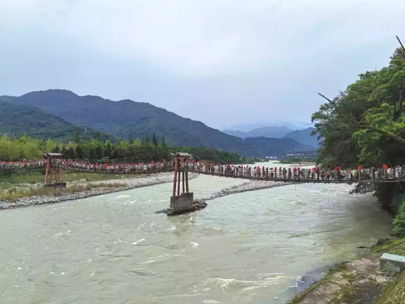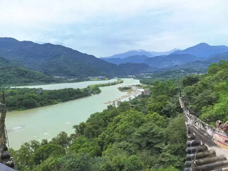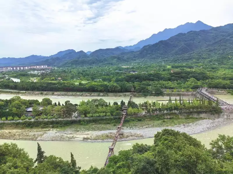 Recommended route: Enter the scenic spot from Qinyan Gate, climb to the highest point to get a bird's-eye view of the entire Dujiangyan, then go downstairs and walk to the Erwang Temple commemorating Li Bing and his son to learn about their contribution to the Dujiangyan water conservancy project, and then walk across the Anlan Bridge to experience the historical charm of this ancient city. Turning right after crossing the bridge is the Yuzui Dike, which divides the Min River into the inner river and the outer river, the inner river is used for irrigation and the outer river is used for flood drainage.