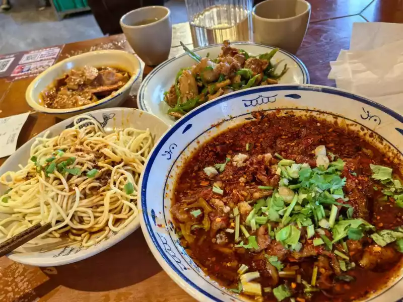 After checking in, I found a beef hot pot at the door of the hotel, full of expectations, and when the dishes were finished, I found that I had gone to the wrong restaurant, so I could only eat the wrong one, this taste is really indescribable, and the hygiene situation is not very good, and I stepped on the thunder in the first meal. Today, I got up at half past five in the morning to catch the plane, and drove to Chengdu for more than five hours, a little tired, and after a meal, I walked around the neighborhood and went back to the hotel to rest.