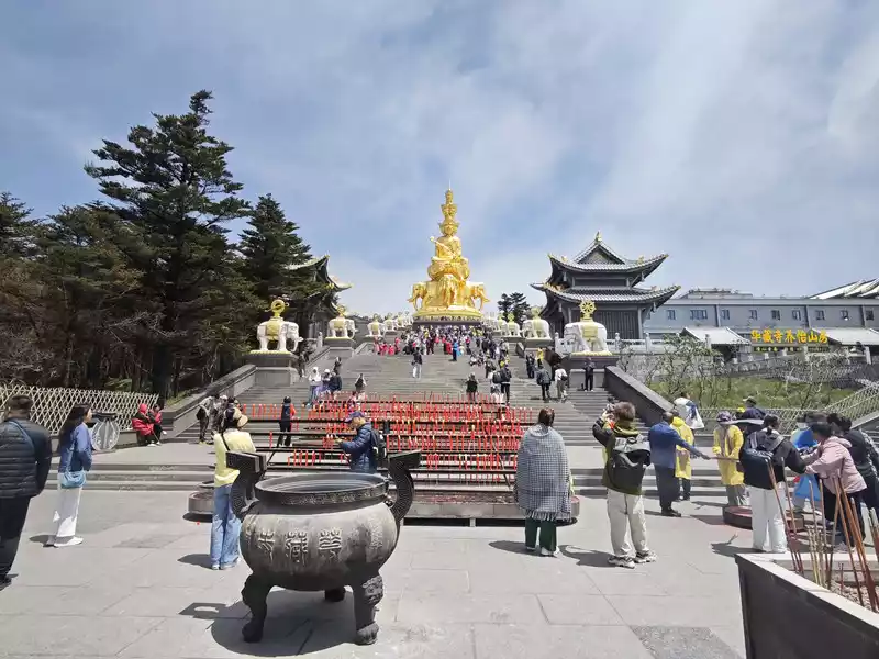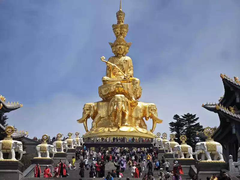 The last stop of the tour of Mount Emei, take the cable car to the Golden Peak, as the highest point of Mount Emei, with an altitude of more than 3,000 meters, checking in the misty Golden Dome, which is an unforgettable experience. The beauty here is far better than any palace on earth, especially on cloudy days, the golden dome seems to have become a fairyland on earth.