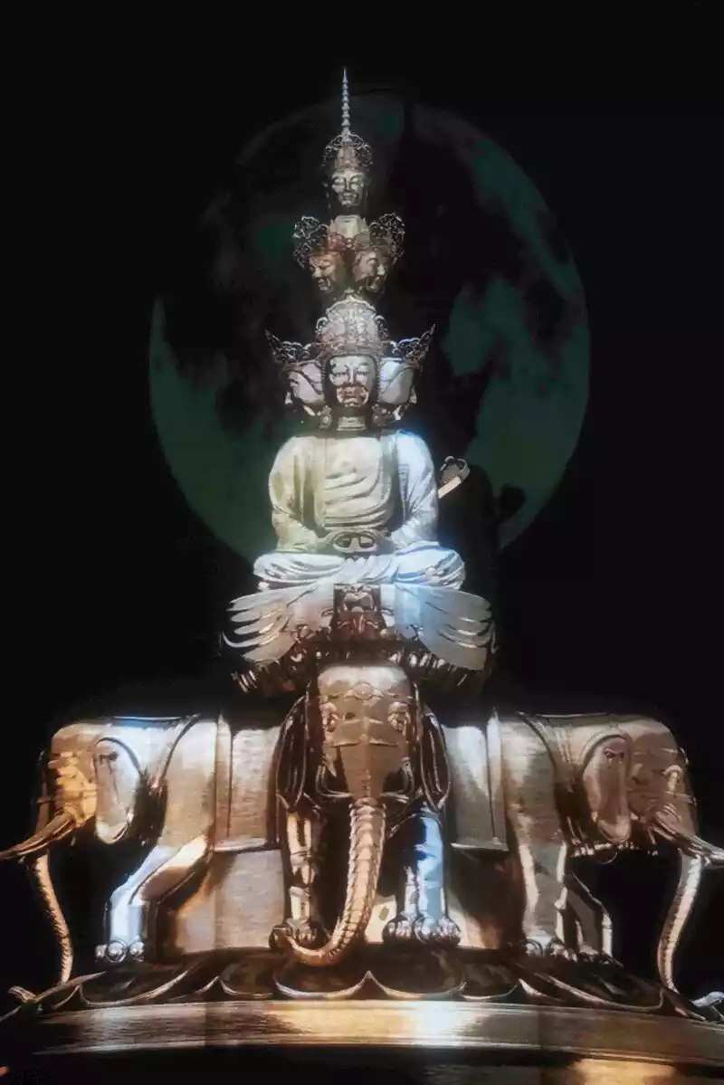 The beamless brick hall in the temple is famous for its unique architectural style. There is not a single slender beam in the entire hall, showing exquisite craftsmanship and profound cultural connotation. The bronze statue of Dai Puxian Bodhisattva riding an elephant enshrined in the hall, with a height of 7.3 meters and a weight of 62 tons, is the treasure of the town temple here. Its beautiful shape and serene demeanor symbolize the depth and compassion of Buddhism, which is awe-inspiring.