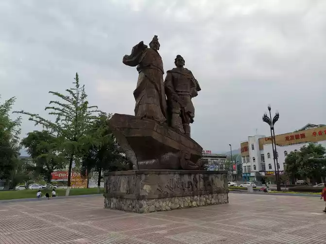 Li Deyu statue, Li Deyu, the governor of Jiannan during the reign of Emperor Wenzong of Tang, set up thirty-six forts on the line from Songzhou to Maozhou, and built a border building on the cliff of Songzhou Xishan.