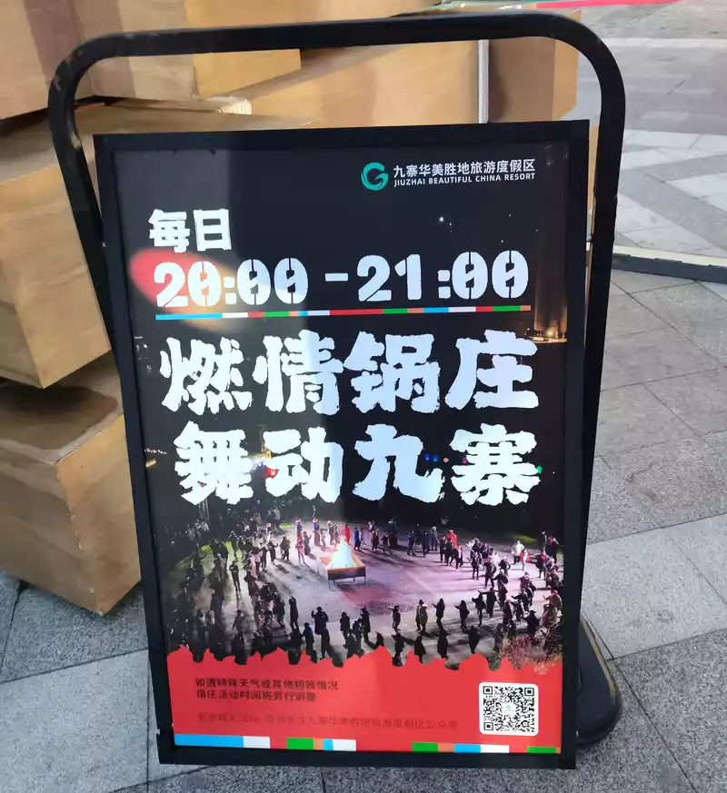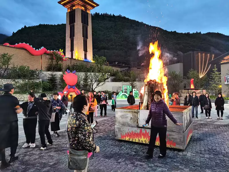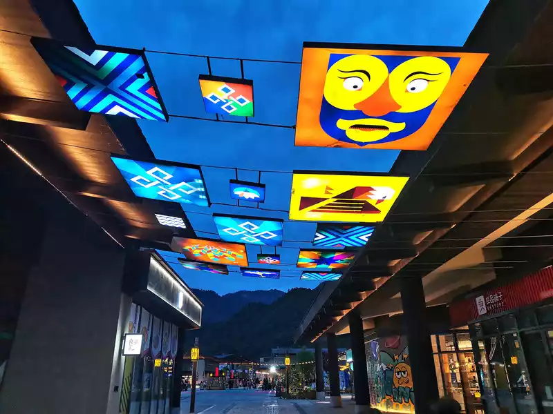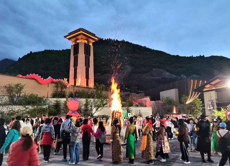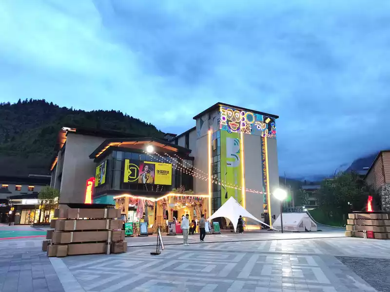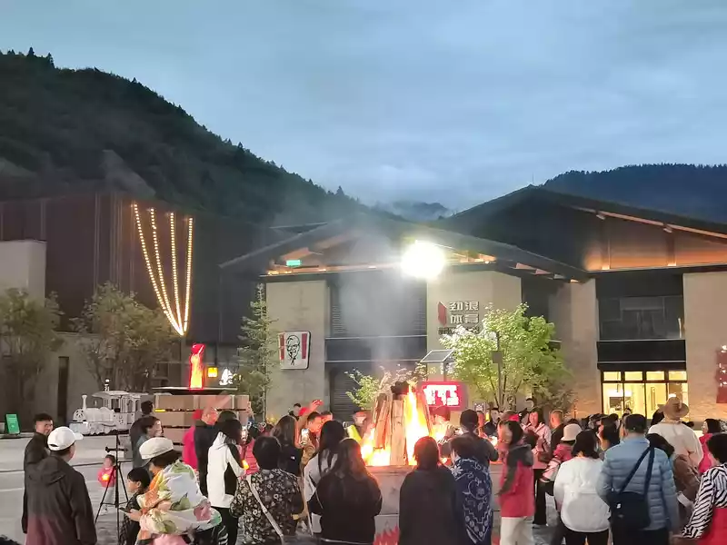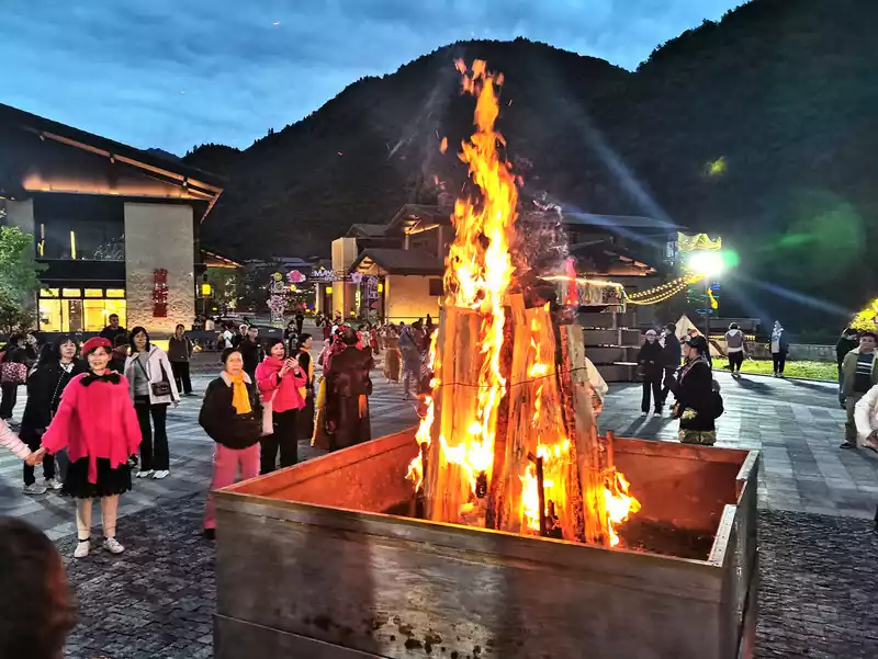 20 o'clock-21 o'clock every day: "Burning love pot village, dancing Jiuzhai." - Jiuzhai Huamei Resort Tourist Resort, the resort has five high-end resort hotel clusters, focusing on building commercial and entertainment projects such as Tibetan and Qiang intangible cultural heritage towns and Green No. 7 Park.