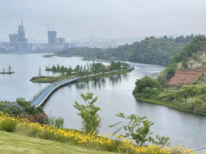 Xinglong Lake (Xinglong Lake Wetland Park), located in Tianfu New Area , thousands of acres of lake is known as the "urban green heart", built for the Luxi River. There are roadshow centers, unicorn islands, lakeside bookstores, fluorescent runways and other landscapes, surrounded by Western (Chengdu) Science City, Chengdu-Chongqing Comprehensive Science Center, and Tianfu Xinglong Lake Laboratory.