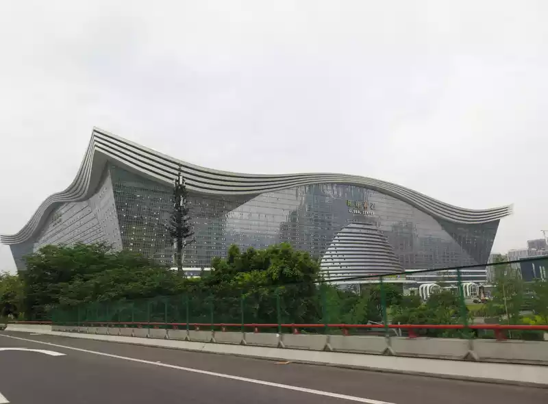 Pass by the New Century Global Center , located in the northern section of Tianfu Avenue, it is known as the largest single building in Asia, with a total construction area of about 1.76 million square meters. Shaped like "flying seagulls, undulating waves", it forms a "cornucopia on the water" against the backdrop of sunlight and water features. It is a multi-functional building integrating entertainment, exhibition, business, shopping and hotel.