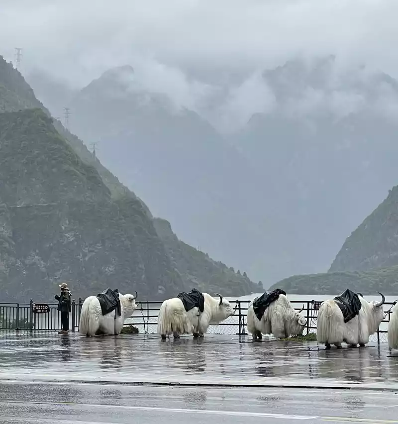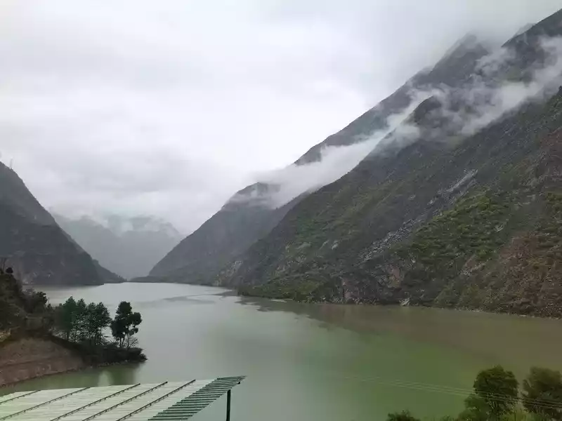 The service area is close to the Min River, with a long and narrow river valley, towering peaks and clouds.