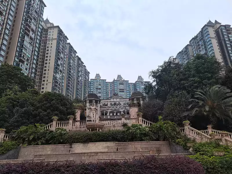 A residential community near the hotel is a high-rise building, Facing you is a European-style high-step garden.